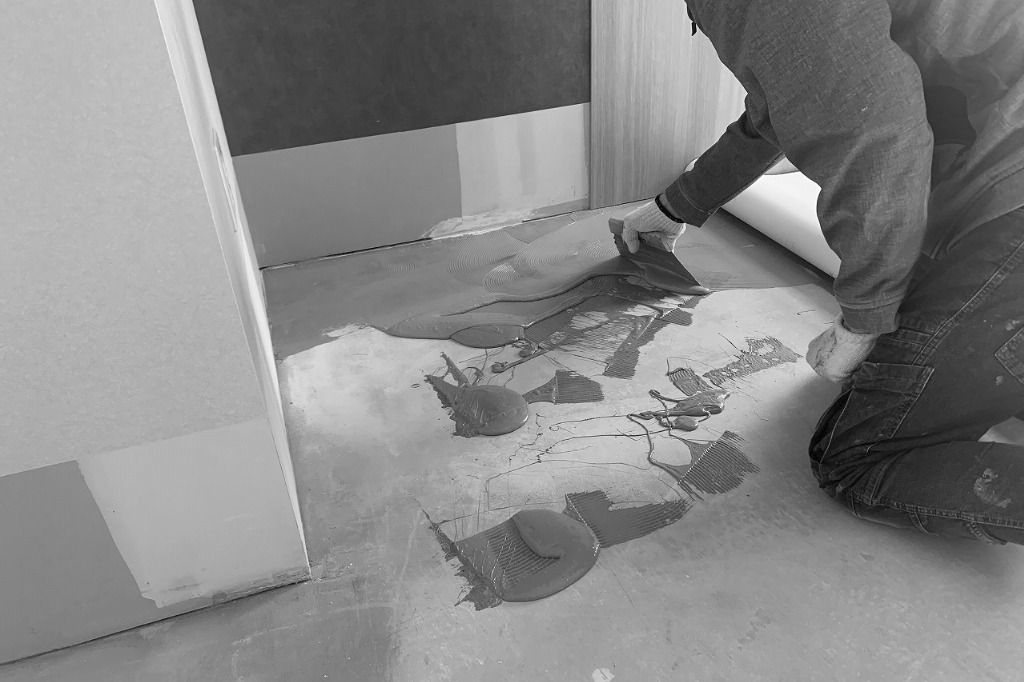弊社では大規模工事における長尺シート工事を主に担っていますが、その他にも防水工事、シーリング工事、塗装工事、タイル工事、下地補修工事などご要望に合わせてさまざまな工事を行っています。